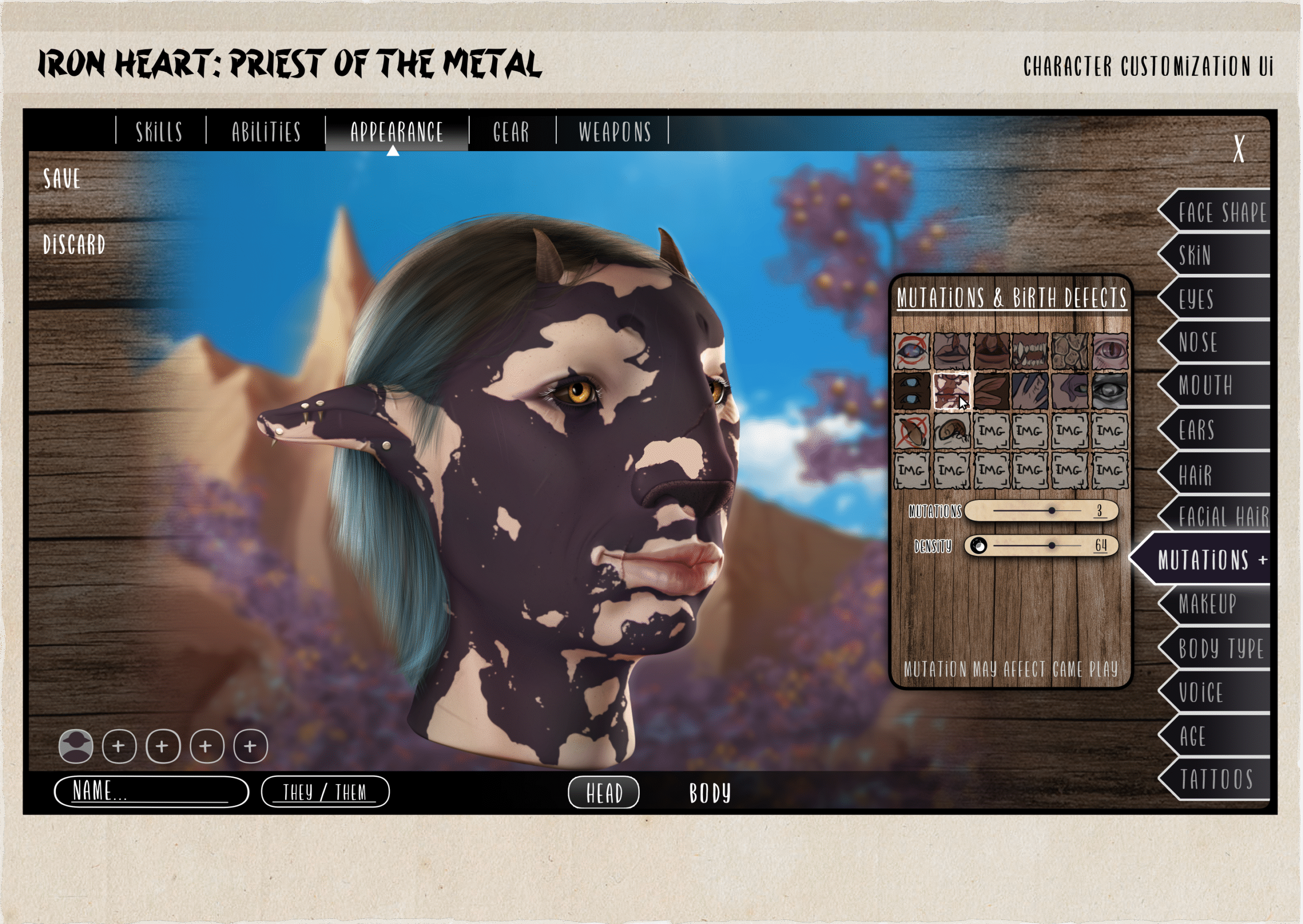 character customization UI